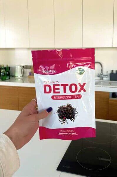 - Shake the package and add one Lulutox Detox Tea packet to a cup of hot water.